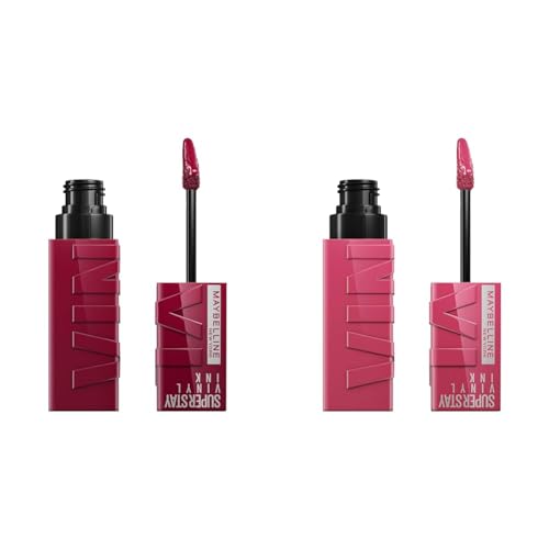 This 2-piece bundle from Maybelline includes the Super Stay Vinyl Ink liquid lipcolor in highly pigmented and glossy shades of Berry Burgundy and Rose Mauve Nude. Both longwear lipsticks deliver saturated vinyl color with a shine finish, featuring a vegan formula that lasts up to 16 hours without smudging or transferring. The Berry Burgundy lipstick provides a rich, deep red hue while the Rose Mauve Nude offers a lighter pinkish nude, allowing you to create a range of looks from bold to subtle. Both formulas offer precise application with a flocked tip applicator. Simply shake for 5 seconds before applying to clean, dry lips. With Super Stay Vinyl Ink, you get the no-budge durability of a lip stain combined with the high-impact shine of a lip gloss. The collection of 20 shades covers bright, vivid tones along with wearable nudes and reds. Pair these lipsticks with other Maybelline makeup like foundations, concealers and eyeliners to complete your beauty routine.
