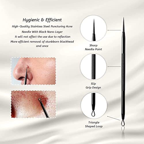 💗【Anti-allergic Design】The pimple popper tool designed with electroplated needle and stainless steel,It won’t cause sensitivity issues, our acne extractor kit can work on all types of skin.